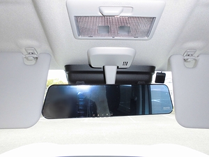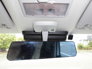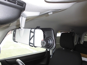 ルームミラーへの取付は、付属のゴムバンドで取り付ける。