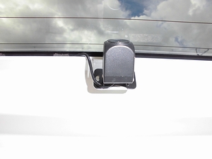 専用ブラケットの貼り付けとリアカメラの取り付け。