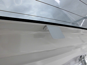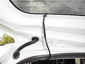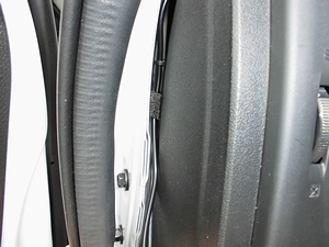フロントドアの横あたりの隙間にケーブルを隠す。(エプトシーラーを使用) リアカメラの配線はセンターコンソールカバーの中を通す。周辺はフロアカーペットで隠す。