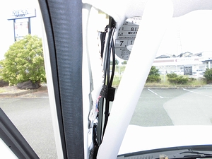 サンバイザーを下げると、ギリギリだった。ピラーカバーを外して配線を隠す。