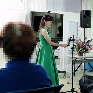 (よく聞く歌謡曲を中心に選曲していただき、皆で合唱もしました。)